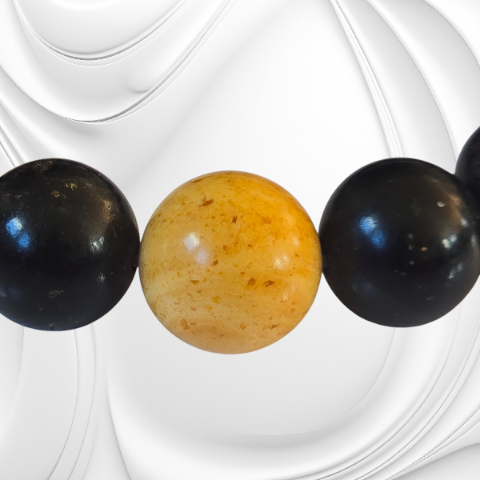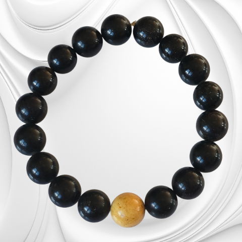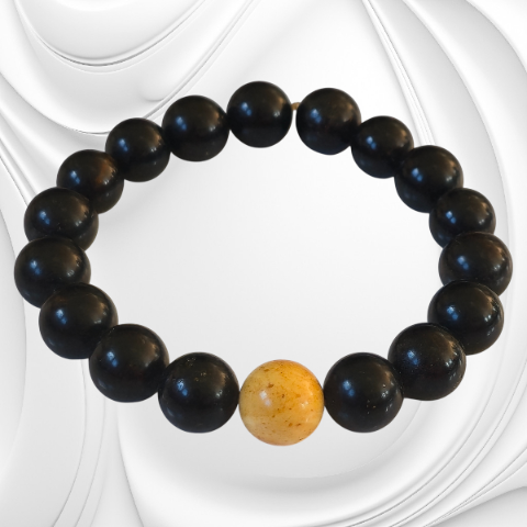 Ta bransoleta z ciemnego bursztynu z kulką mlecznego bursztynu to wyjątkowa biżuteria, która łączy naturalne piękno z subtelną symboliką. Każda kulka została starannie wypolerowana, aby wydobyć głębię barwy i naturalny połysk. Ciemne odcienie bursztynu tworzą eleganckie tło dla jednej, jasnej kulki bursztynu mlecznego — symbolu światła, równowagi i spokoju.