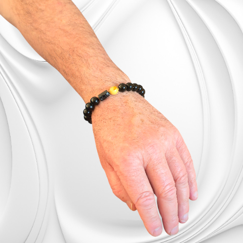 Bransoleta z onyksu, bursztynu i turmalinu to połączenie siły natury i ponadczasowej elegancji.
