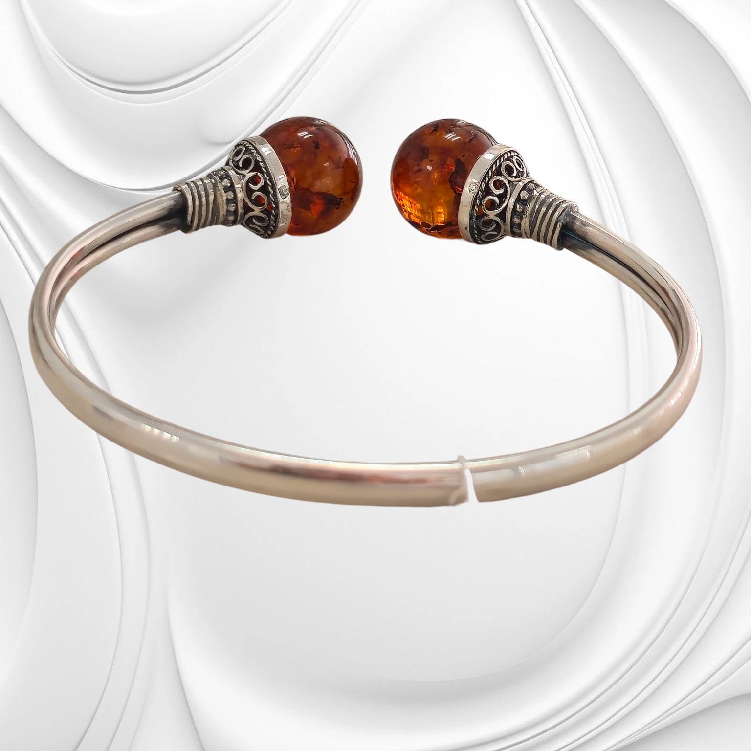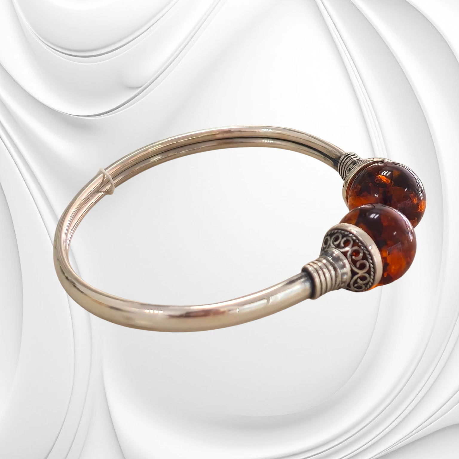Srebrna bransoletka z kulkami koniakowego bursztynu