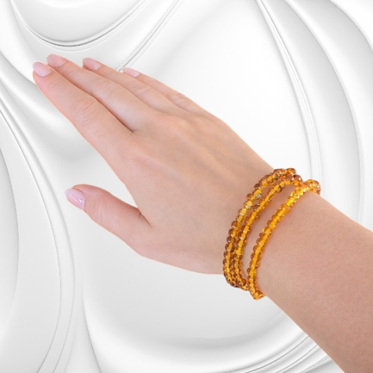 Naturalna bransoletka z bursztynu bałtyckiego na drucie pamięciowym. Elastyczna biżuteria z bursztynu, która pasuje na każdą rękę i zachwyca ciepłym blaskiem.