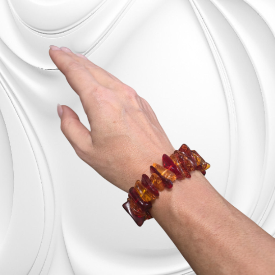 Bursztyn od tysiącleci uznawany jest za kamień słońca – symbol energii, ochrony i harmonii. Odcień koniaku przyciąga ciepło i równowagę, a czerwony bursztyn dodaje odwagi, pewności siebie i pasji. To wyjątkowe połączenie kolorów sprawia, że bransoletka jest nie tylko ozdobą, ale także amuletem pełnym pozytywnej energii.