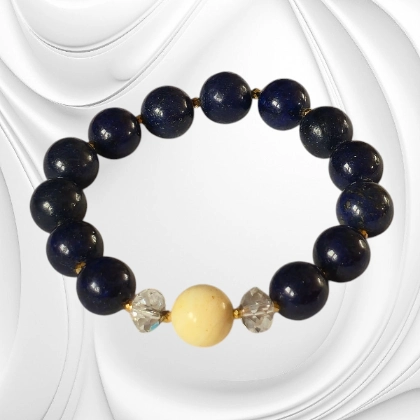Ta ręcznie robiona bransoletka z kamieni naturalnych łączy głęboki błękit lapisu lazuli, ciepły odcień bursztynu, elegancki połysk hematytu i subtelny błysk kryształków Swarovski. Każdy element starannie dobrany, tworzy spójną, harmonijną kompozycję o wyjątkowym, artystycznym charakterze.