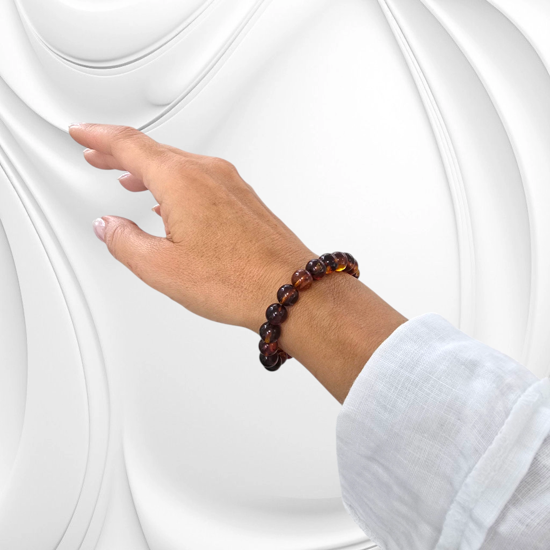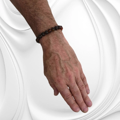 Od wieków bursztyn fascynował ludzi swoim blaskiem i ciepłem. Mówi się, że ma właściwości oczyszczające i uspokajające. W tej bransoletce zawarta jest esencja natury – ciemny koniakowy bursztyn przywołuje wspomnienia zachodów słońca nad Bałtykiem i siłę żywiołów. To więcej niż biżuteria – to talizman w eleganckiej formie.