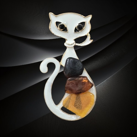 Broszka z naturalnego bursztynu bałtyckiego – kot