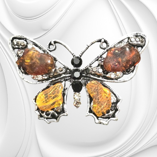 Broszka z naturalnego bursztynu bałtyckiego – motyl