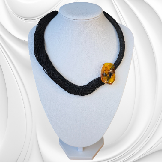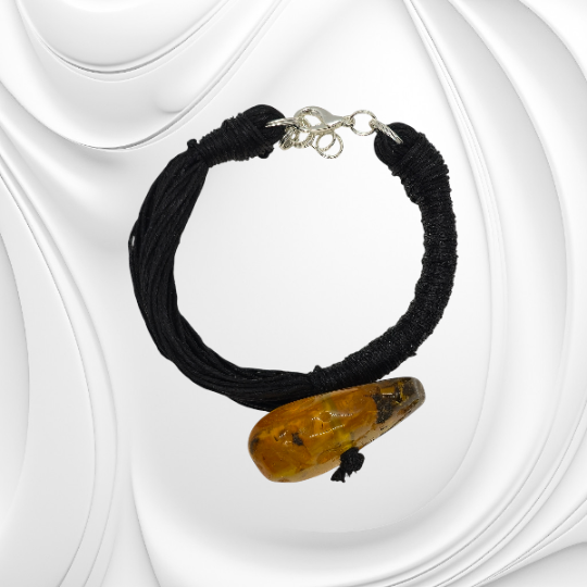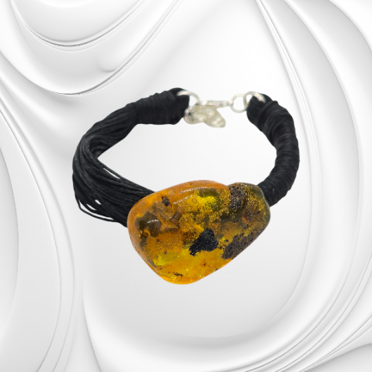 Bursztyn od tysiącleci fascynuje swoją historią i energią. Nazywany kamieniem słońca przynosi ciepło, pogodę ducha i naturalne piękno. W połączeniu z lnem zachowuje swój surowy urok i podkreśla indywidualny styl właścicielki.
