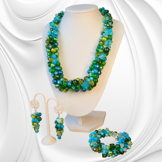 Biżuteria handmade powstaje z pasji do tworzenia i miłości do detali. Każdy koralik jest starannie dobrany, aby stworzyć kompozycję kolorów przypominającą spokojne niebo, turkusową wodę i świeżą zieleń natury. Kolczyki w odcieniach błękitu, zieleni i turkusu są lekkie, subtelne i pełne naturalnej harmonii. Nosząc je, możesz dodać swojej stylizacji odrobinę świeżości i koloru.