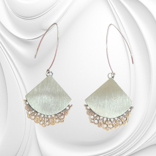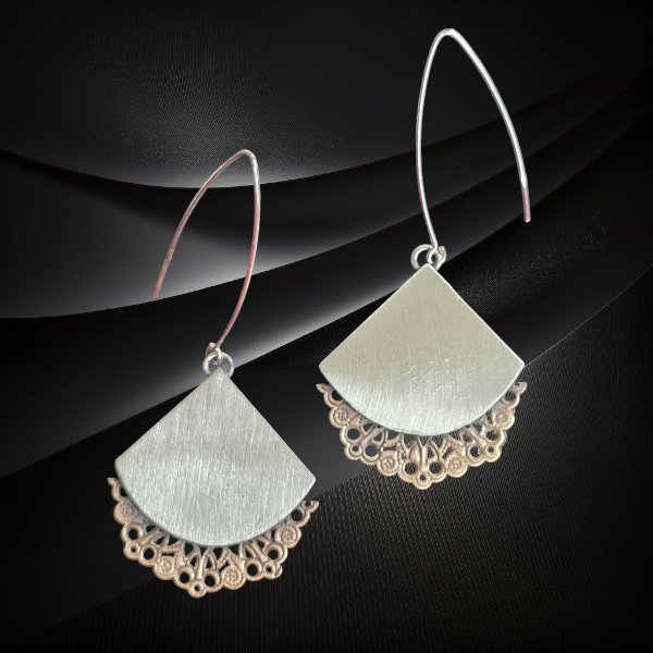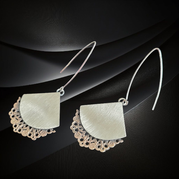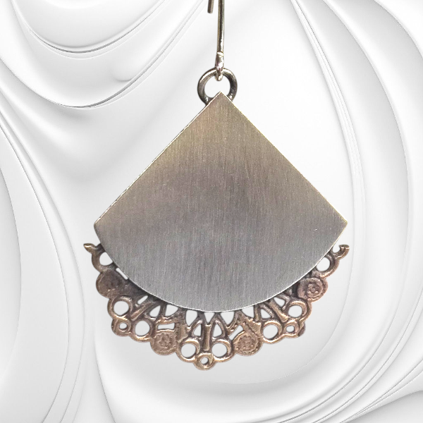 Głównym materiałem jest srebro próby 925, wzbogacone o mosiężną koronkę, której delikatna struktura została połączona ze srebrem w procesie galwanizacji. Ta technika nie tylko utrwala precyzyjne zdobienia, ale również pozwala na uzyskanie unikatowych efektów kolorystycznych, subtelnych przejść i kontrastów, które czynią każdy egzemplarz wyjątkowym.