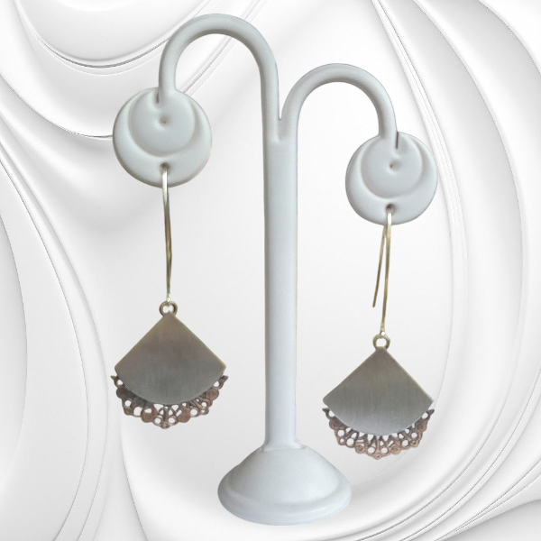 Kolczyki osadzone są na biglu, co dodaje im lekkości i swobody w noszeniu. To biżuteria dla osób ceniących oryginalność, rzemieślniczą precyzję i niebanalny styl – subtelna, a zarazem wyrazista ozdoba o duszy prawdziwego dzieła sztuki.