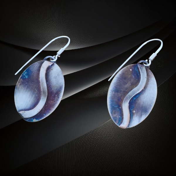 Ręcznie wykonane kolczyki ze srebra próby 925 z dodatkiem brązu to niezwykłe połączenie rzemiosła artystycznego i nowoczesnego designu. Ich elegancki owalny kształt oraz subtelne pofalowania nadają im niepowtarzalny, organiczny charakter. Dzięki wykorzystaniu brązu i techniki galwanizacji, każdy egzemplarz zachwyca unikalnymi efektami kolorystycznymi i wyjątkową fakturą powierzchni.