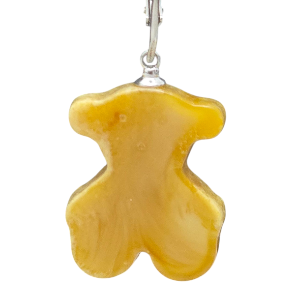 Każdy miś został precyzyjnie wykonany z naturalnego, miodowego bursztynu, a następnie osadzony na delikatnym srebrnym zapięciu, które zapewnia wygodę i trwałość. To biżuteria z bursztynu, która łączy tradycję z nowoczesną formą – idealna dla osób w każdym wieku.