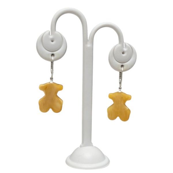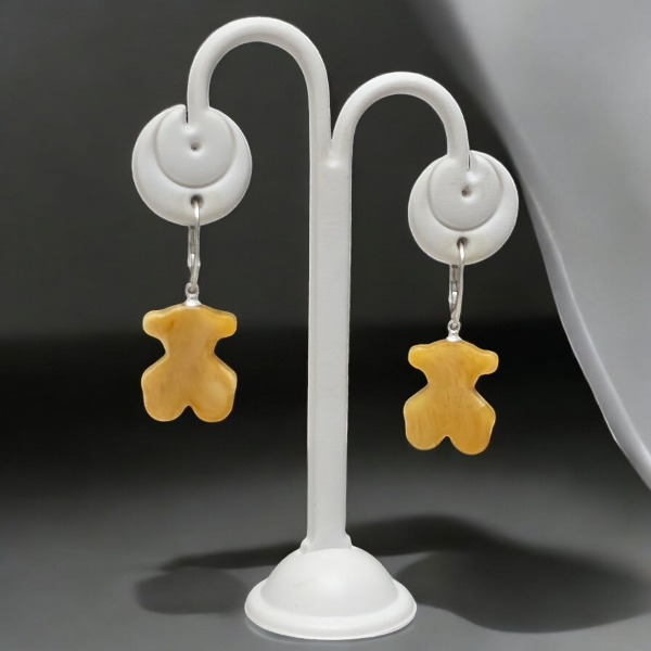 Ręcznie robione kolczyki z bursztynu w kształcie misia na srebrnym zapięciu. Uroczy dodatek i doskonały prezent z naturalnego bursztynu.