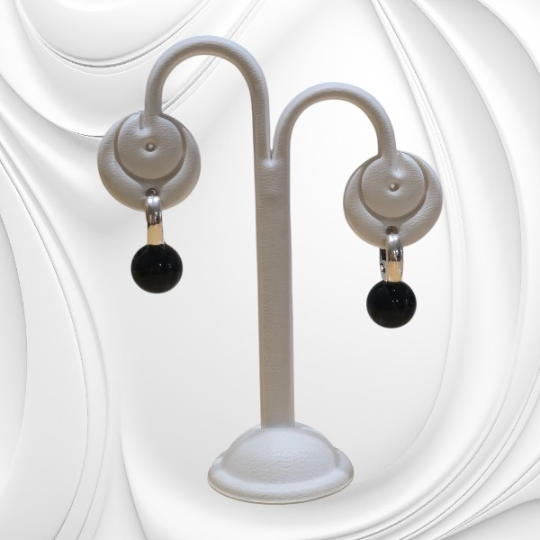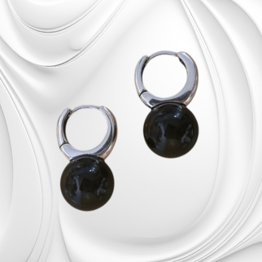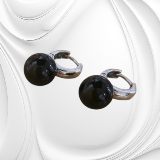 Kolczyki z kulką czarnego onyksu na srebrnym zapięciu typu kajdanki – ponadczasowa elegancja