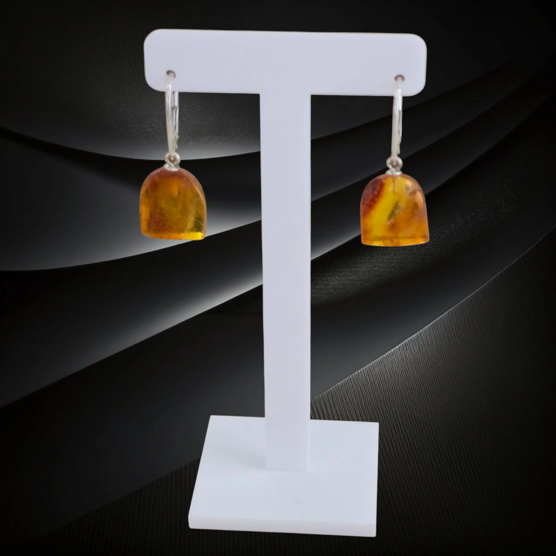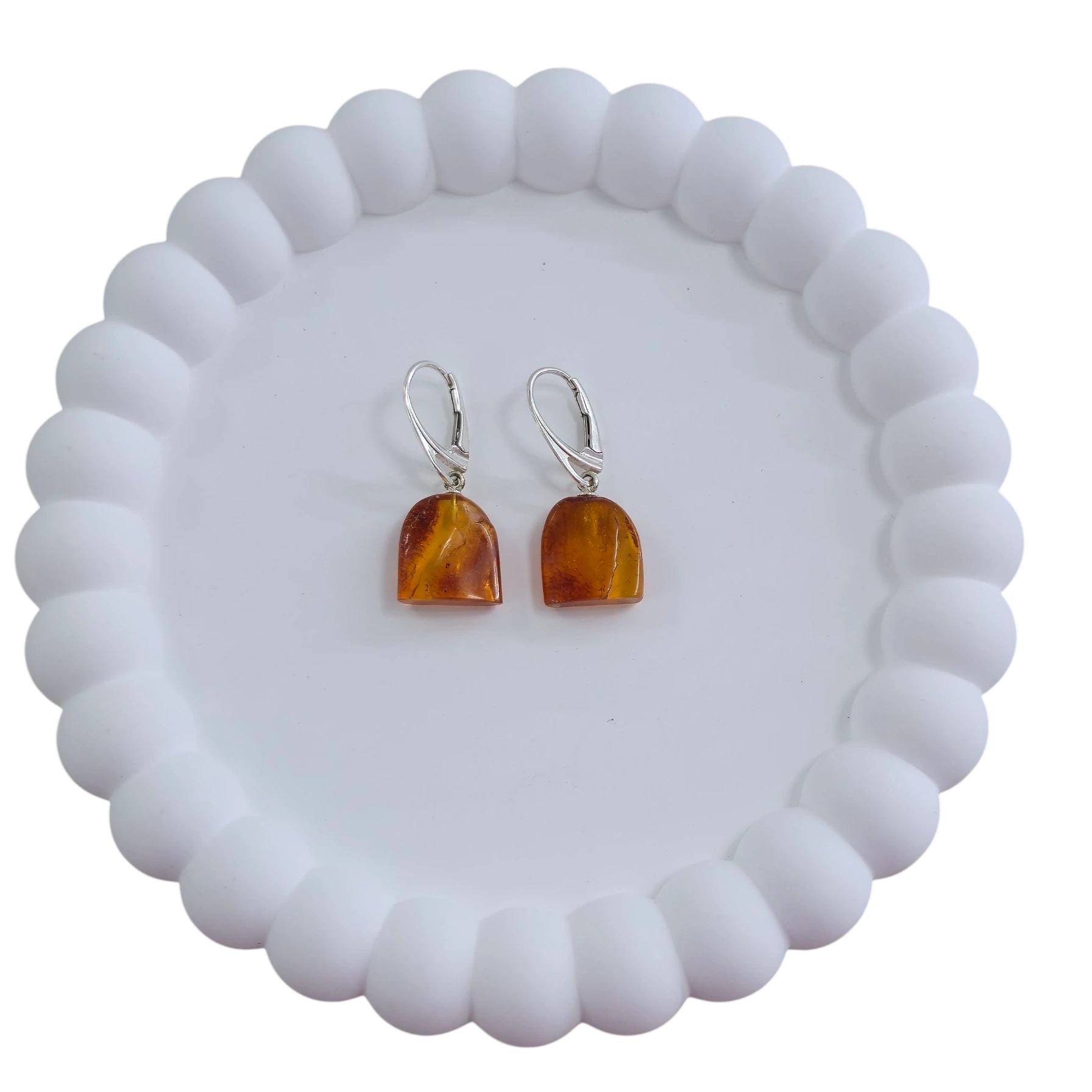 Naturalne kolczyki z polerowanego bursztynu na srebrnym zapięciu. Ręcznie wykonana biżuteria – klasyka, która nigdy nie wychodzi z mody.