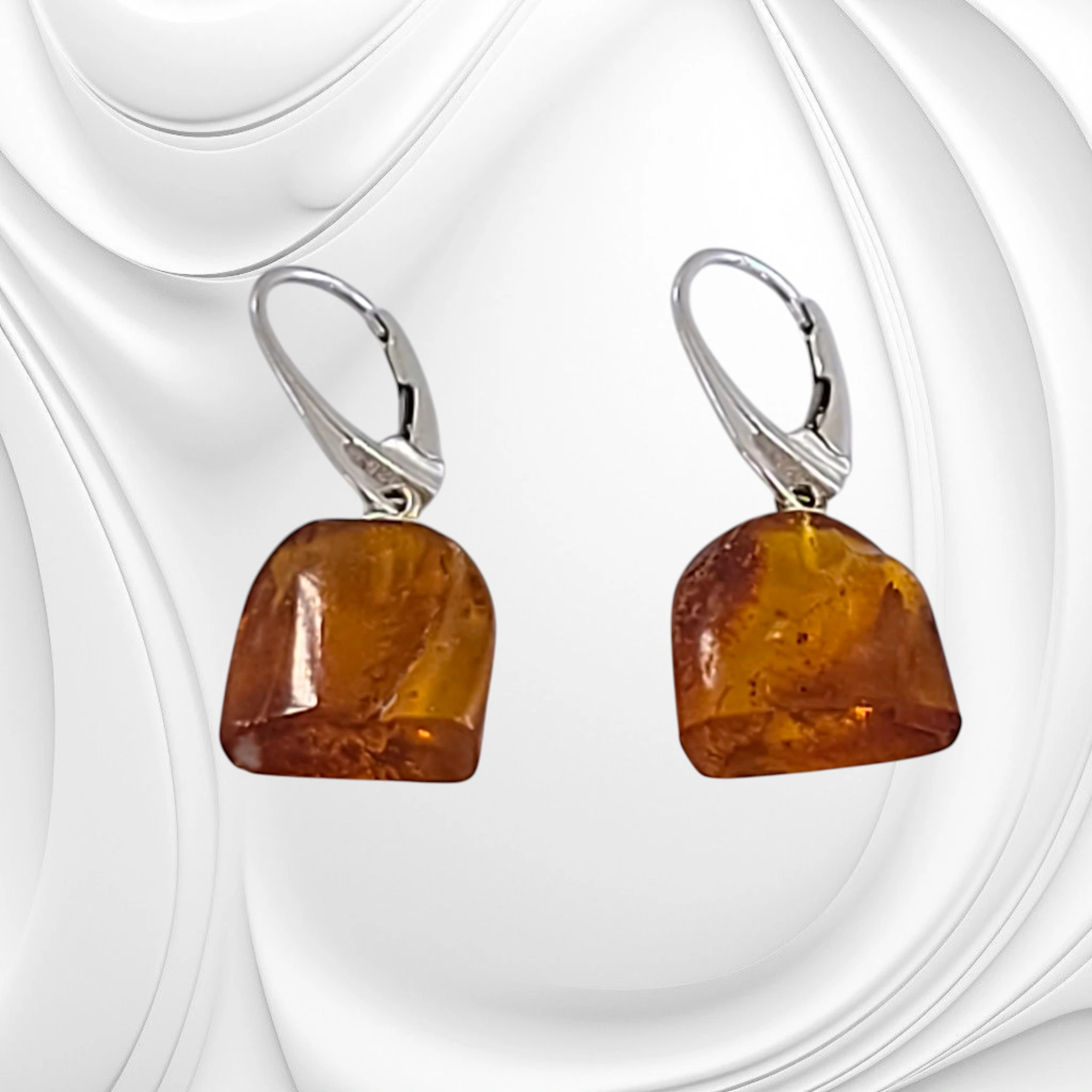 Kolczyki z polerowanego bursztynu na srebrnym zapięciu to połączenie elegancji i natury.