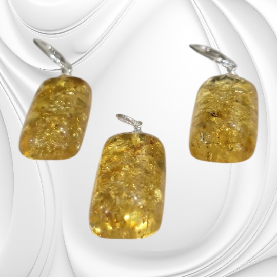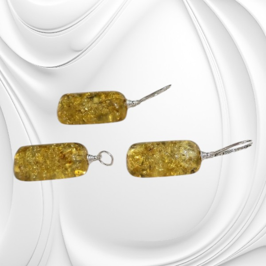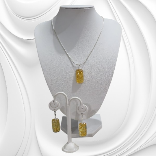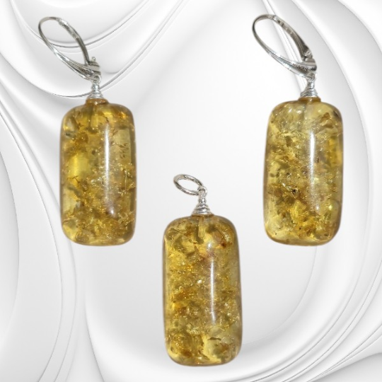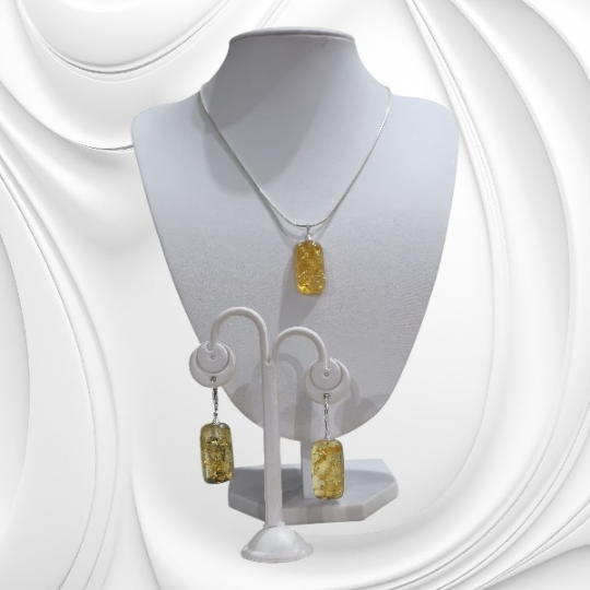 Komplet z bursztynu słonecznego bałtyckiego – kolczyki i zawieszka ze srebra