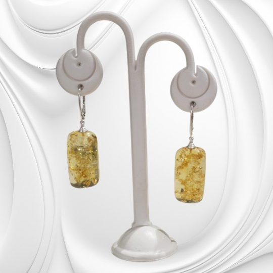 Kolczyki wyposażono w solidne zapięcie typu angielskiego wykonane ze srebra, które gwarantuje komfort noszenia i stabilność przez cały dzień. Zawieszka została osadzona na eleganckiej srebrnej krawatce, która podkreśla jasny odcień bursztynu i nadaje całości klasyczny, harmonijny wygląd.