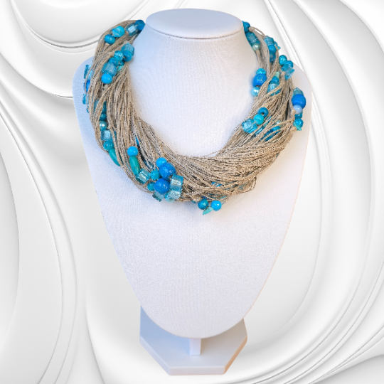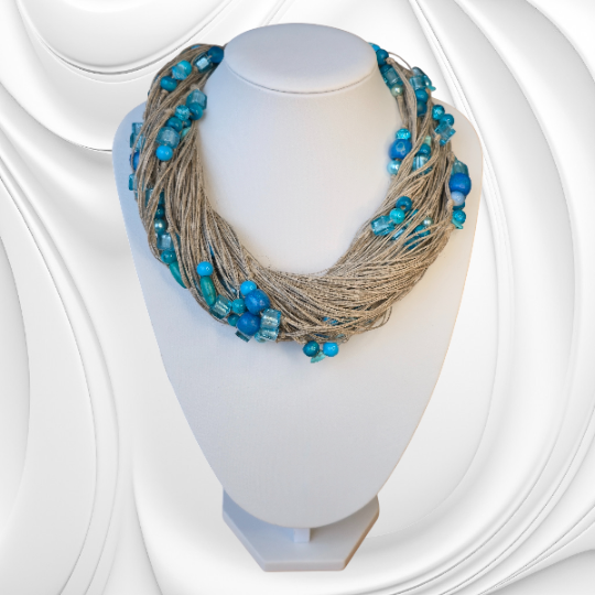 Napisz pierwszą opinię o „Naszyjnik w kolorze turkusu z lnu szkła i koralików”