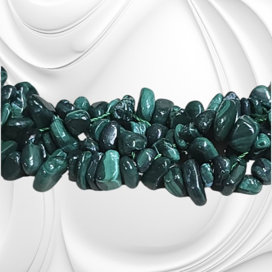 Naszyjnik z drobnych bryłek malachitu to naturalna biżuteria o intensywnej zieleni i wyjątkowej energii.