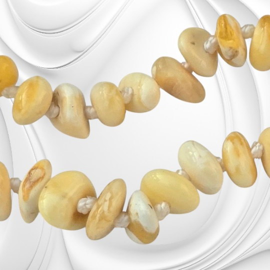 Każdy element różni się kształtem, odcieniem i strukturą – od jasnych, złocistych tonów po głębsze, koniakowe refleksy. Dzięki temu naszyjnik z bursztynu bałtyckiego jest niepowtarzalny i pełen charakteru.