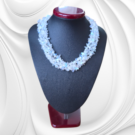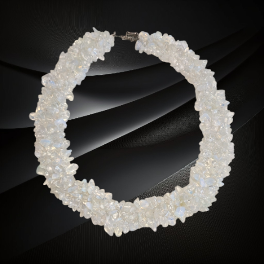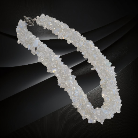 Naszyjnik z drobnych opali zachwyca subtelnym blaskiem i naturalnym pięknem kamieni, tworząc delikatną biżuterię na co dzień.