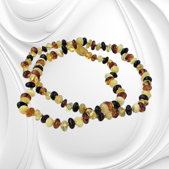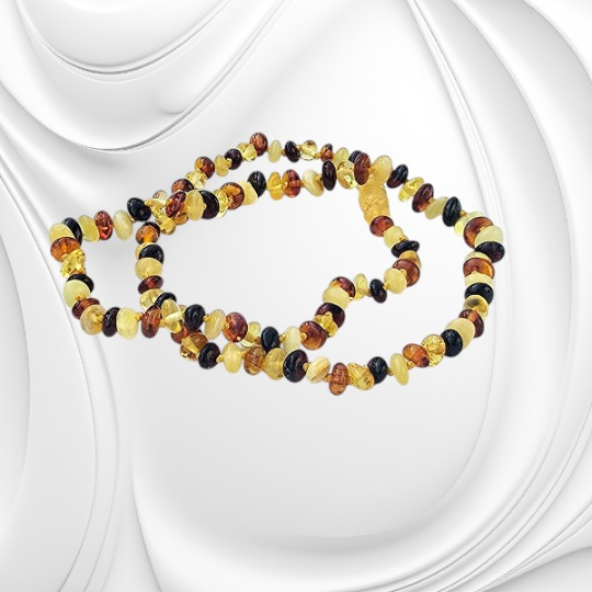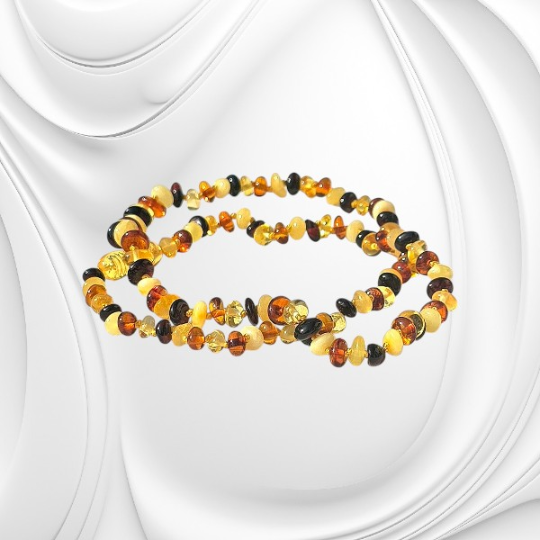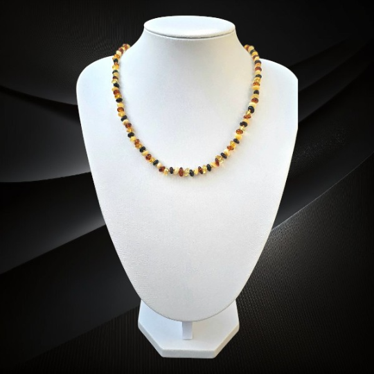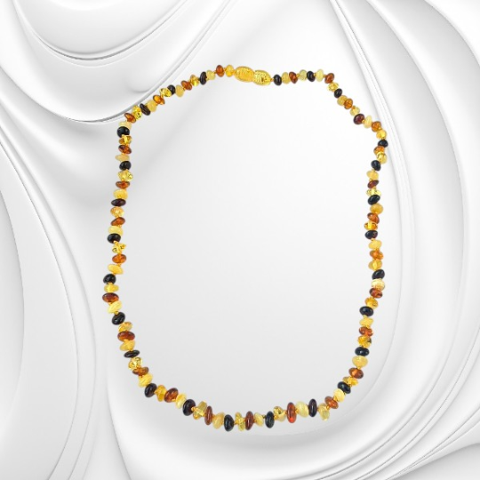 Każda kulka bursztynu powstała miliony lat temu z żywicy pradawnych drzew. Z biegiem czasu natura nadała jej formę i wyjątkową strukturę. Wyobraź sobie spacer po plaży o zachodzie słońca, gdy bursztyny o różnych odcieniach – od jasnych po ciemne – lśnią w piasku. Ten naszyjnik oddaje właśnie tę różnorodność i naturalne piękno, które możesz mieć zawsze przy sobie.