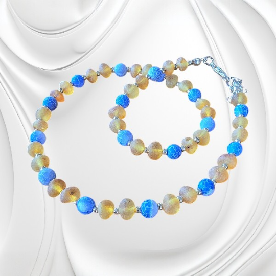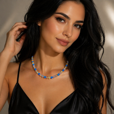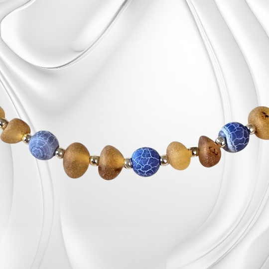 Naszyjnik z drobnych kulek matowego bursztynu i jadeitu to subtelna biżuteria inspirowana naturą i harmonią kolorów. Ciepła barwa bursztynu pięknie łączy się z delikatnym odcieniem jadeitu, tworząc elegancką i naturalną kompozycję. Matowa powierzchnia kamieni nadaje naszyjnikowi wyjątkowego charakteru, dzięki czemu biżuteria wygląda niezwykle stylowo i ponadczasowo.