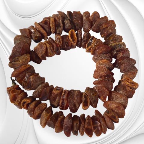 Każdy egzemplarz jest unikalny – wykonany z naturalnych, różniących się kształtem i barwą bursztynów. Od złocisto-miodowych po głęboko koniakowe, każda bryłka ma swoją historię. To prawdziwe dzieło natury i rzemieślniczej precyzji, które zachwyci miłośników oryginalnych dodatków.
