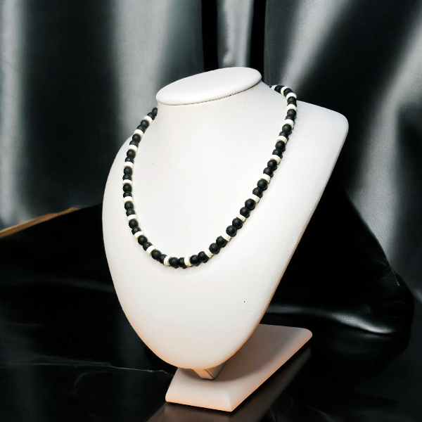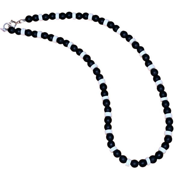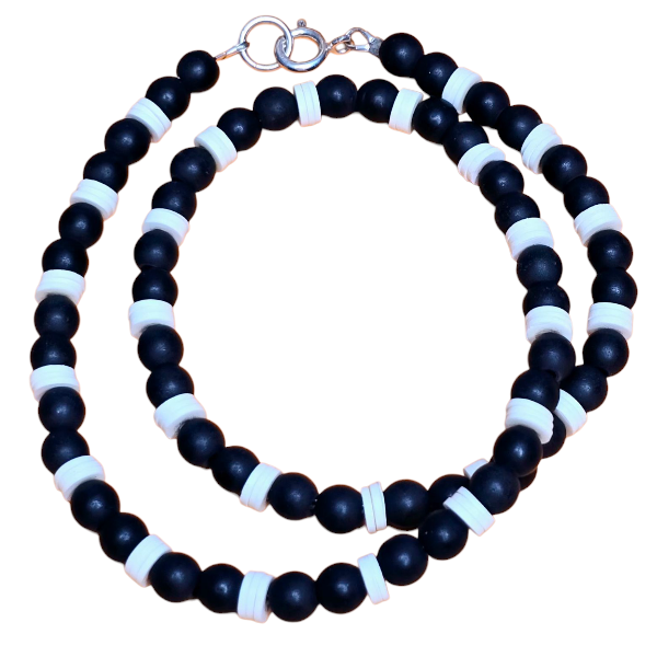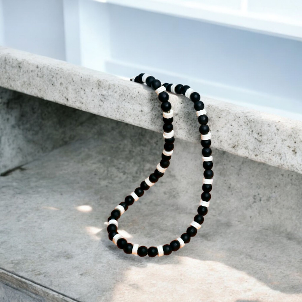 Ręcznie wykonany naszyjnik z onyksu i koralików katsuki.