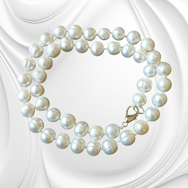 Naszyjnik z białych pereł rzecznych – klasyka w nowoczesnym wydaniu.
