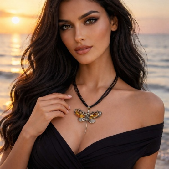 Ważka od wieków symbolizuje przemianę, wolność i harmonię z naturą. W tym naszyjniku stanowi centralny element kompozycji, przyciągając uwagę swoją delikatną formą. Połączenie motywu ważki z naturalnym bursztynem tworzy biżuterię pełną znaczenia i subtelnej elegancji. To idealny wybór dla osób ceniących symbolikę i naturalne inspiracje.