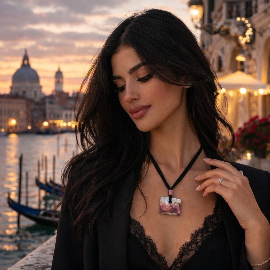 Szkło Murano od wieków kojarzone jest z mistrzowskim rzemiosłem i artystyczną pasją. Każda zawieszka to małe dzieło sztuki, w którym kolor i światło tworzą unikatową kompozycję. Nosząc naszyjnik z zawieszką ze szkła Murano, wybierasz biżuterię, która opowiada historię tradycji, kreatywności i piękna zaklętego w szkle.