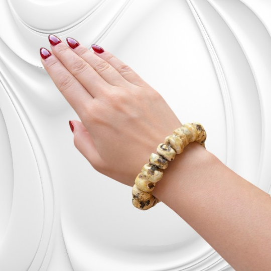 Bursztyn bałtycki powstał z żywicy pradawnych drzew, która przez miliony lat przeobrażała się w kamień o niezwykłej strukturze. Każdy fragment bursztynu posiada niepowtarzalny wzór oraz odcień, dzięki czemu każda bransoletka jest jedyna w swoim rodzaju. Naturalne bryłki bursztynu pięknie odbijają światło i tworzą biżuterię, która przyciąga uwagę swoim ciepłym, naturalnym blaskiem.