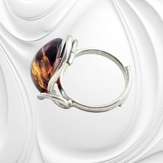 Posrebrzany regulowany pierścionek z bursztynem bałtyckim