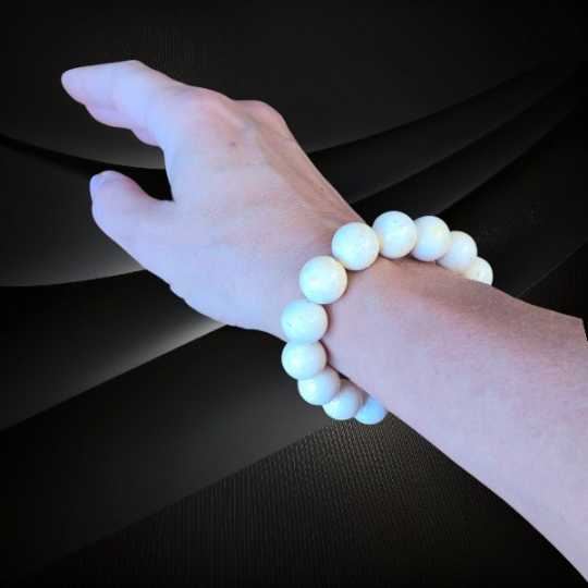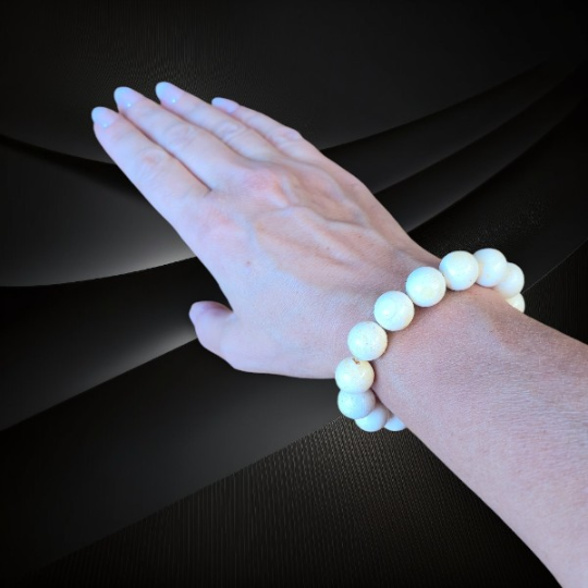 Ta bransoletka z kulek mlecznego bursztynu doskonale dopełnia codzienne i eleganckie stylizacje, dodając im ciepła i subtelnego blasku. Pięknie prezentuje się noszona samodzielnie lub jako część kompletu – do bransoletki polecamy naszyjnik wykonany w podobnym tonie, tworzący spójną i harmonijną całość.