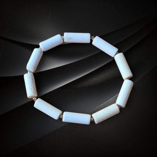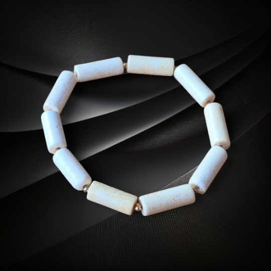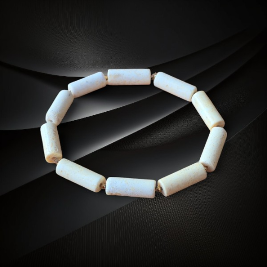 Elastyczna gumka jubilerska sprawia, że bransoletka łatwo dopasowuje się do nadgarstka i pozostaje komfortowa przez cały dzień. Brak zapięcia podkreśla naturalny styl biżuterii i czyni ją praktycznym dodatkiem do codziennych oraz eleganckich stylizacji. Ta bransoletka z wałków mlecznego bursztynu pięknie uzupełnia stylizacje inspirowane naturą, minimalizmem i jasną kolorystyką. Może być noszona samodzielnie jako subtelna ozdoba lub jako element kompletu – do bransoletki polecamy naszyjnik wykonany w podobnym tonie, tworzący spójną i elegancką całość.