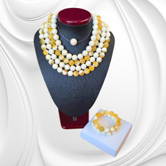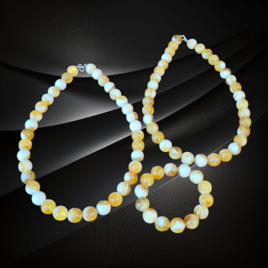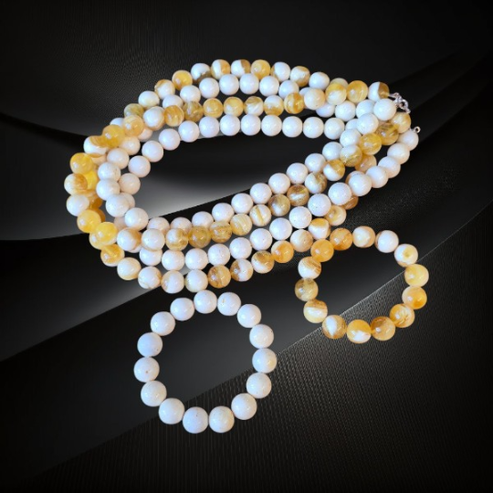 Ten naszyjnik z kulek bursztynu doskonale sprawdzi się zarówno na co dzień, jak i przy bardziej eleganckich okazjach. Jego jasna kolorystyka pięknie współgra z naturalnymi tkaninami i minimalistycznymi stylizacjami. Do kompletu polecamy bransoletkę wykonaną w podobnym tonie, która razem z naszyjnikiem tworzy spójną i harmonijną całość.