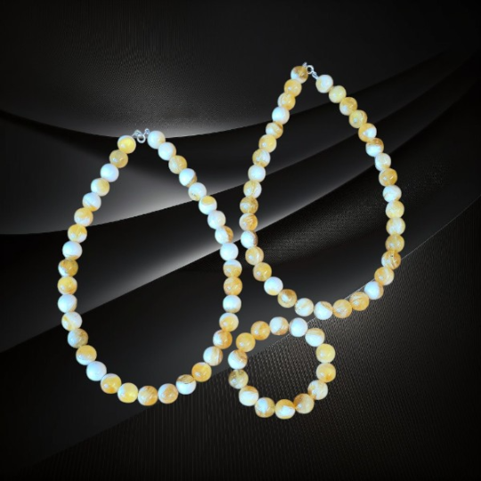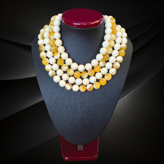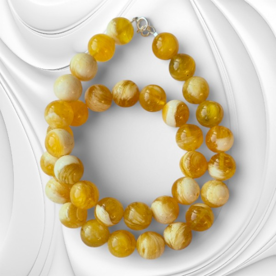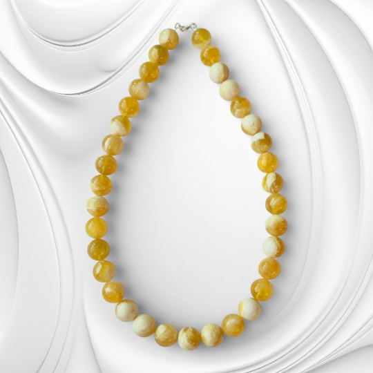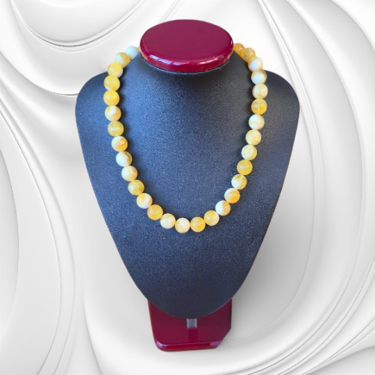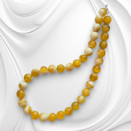 Ręcznie wykonany naszyjnik z bursztynu bałtyckiego urzeka subtelną kolorystyką, naturalnym światłem kamienia i spokojną elegancją inspirowaną naturą. Naszyjnik powstał z naturalnych kulek bursztynu bałtyckiego w delikatnym odcieniu mleczno-słonecznym, który łączy w sobie jasność, ciepło i lekkość. Starannie dobrane i ręcznie wykończone kulki zachowują naturalne inkluzje bursztynu, dzięki czemu każdy naszyjnik jest unikatowy i niepowtarzalny.