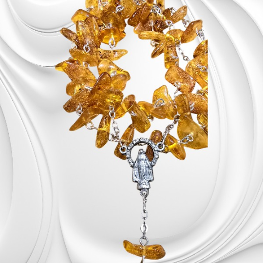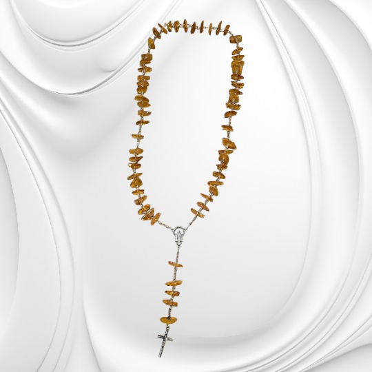 Bałtycki bursztyn powstawał miliony lat temu z żywicy pradawnych drzew, zatrzymując w sobie światło i ciepło natury. W formie różańca nabiera symbolicznego wymiaru – staje się towarzyszem modlitwy i chwil wyciszenia. Nosząc różaniec z bursztynu bałtyckiego, masz przy sobie przedmiot, który łączy duchowość z historią natury.