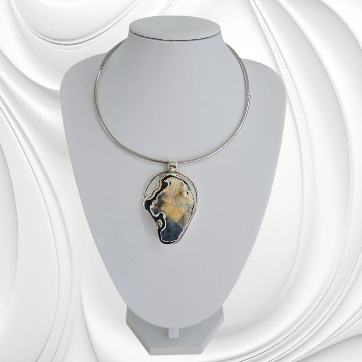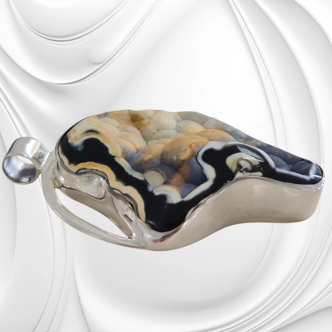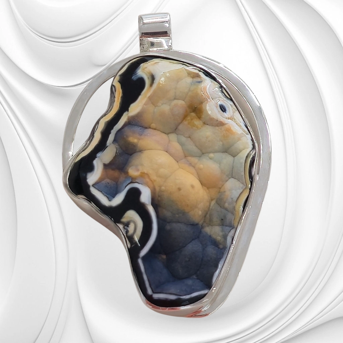 Ta srebrna zawieszka z koralowcem to wyjątkowa propozycja dla kobiet ceniących naturalne piękno i ciepłą kolorystykę. Kamień w odcieniach kawy i karmelu przyciąga wzrok subtelnym urokiem, doskonale komponując się ze srebrem. Całość została ręcznie wykonana z dbałością o każdy detal – od formy kamienia po wykończenie srebrnej krawatki.