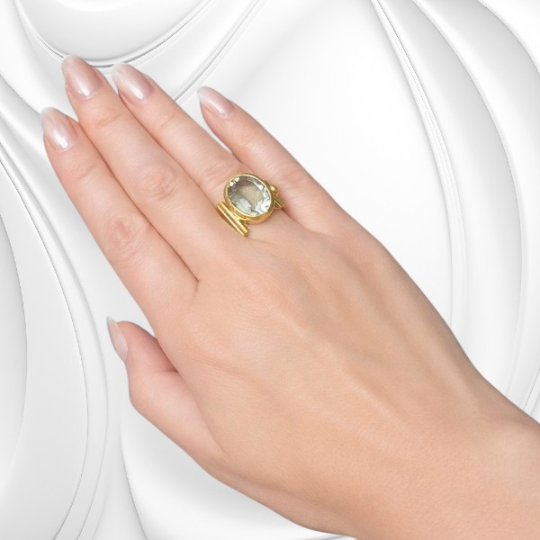 Srebrny pierścionek z szeroką obrączką z dużym oczkiem z topazem i dwoma małymi granatami zachwyca elegancją oraz wyjątkowym połączeniem kolorów naturalnych kamieni. Jasny topaz przyciąga światło, a głębokie granaty dodają kompozycji wyrazistości i szlachetnego charakteru. Topaz symbolizuje światło i klarowność, natomiast granaty od wieków kojarzone są z siłą i głębią emocji. W tym pierścionku duże oczko z topazu stanowi centralny punkt, który pięknie odbija światło i nadaje biżuterii elegancji.