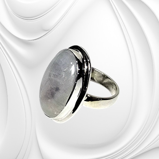 Srebrny regulowany pierścionek z kamieniem księżycowym to biżuteria, która łączy w sobie piękno natury, delikatność i ponadczasową elegancję.