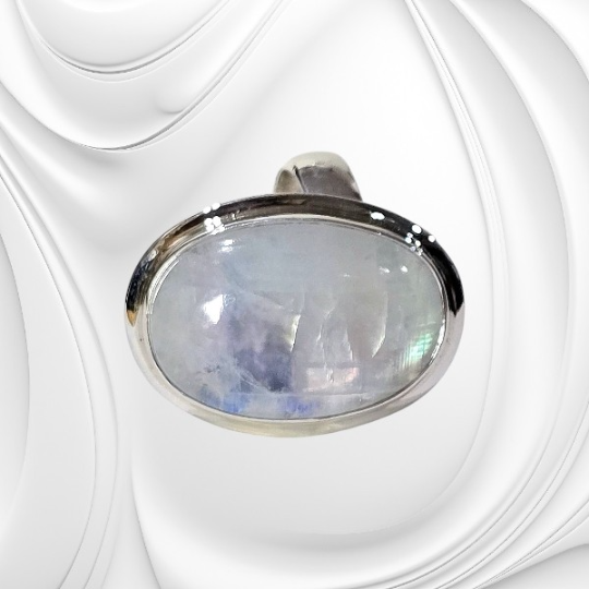 Kamień księżycowy od wieków fascynuje swoim tajemniczym połyskiem przypominającym światło księżyca odbijające się na tafli wody. Jego charakterystyczny efekt optyczny – delikatna, mleczna poświata – sprawia, że jest jednym z najbardziej cenionych kamieni w biżuterii. W tym srebrnym pierścionku naturalny kamień księżycowy został starannie oprawiony w srebro próby 925. Dzięki temu biżuteria zachwyca elegancją, a jednocześnie pozostaje trwała i komfortowa w noszeniu.