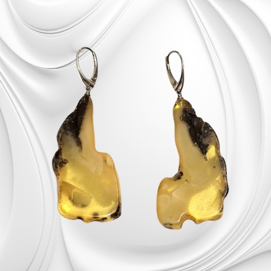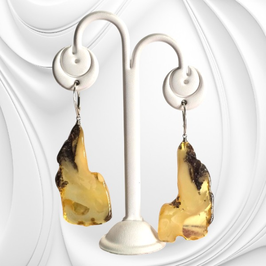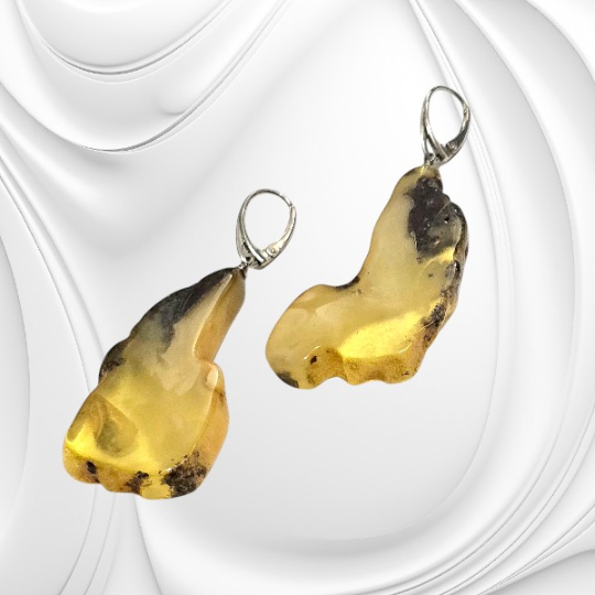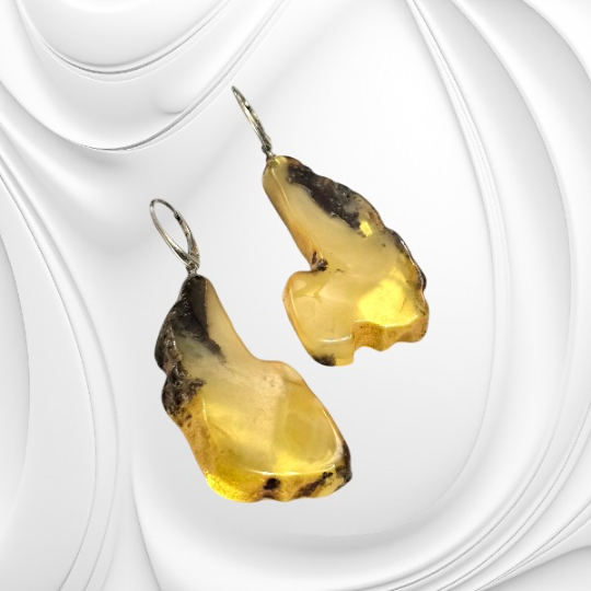 Unikatowe kolczyki z naturalnego bursztynu ze srebrnym zapięciem typu angielskiego. Bałtycki bursztyn, ponadczasowa elegancja i bezpieczne zapięcie.