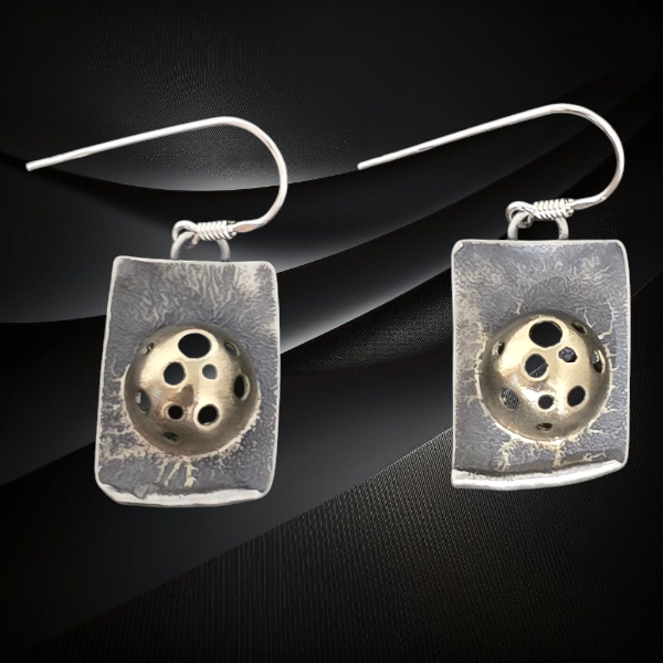Srebrne kolczyki z dodatkiem mosiądzu, unikatowa biżuteria artystyczna handmade.