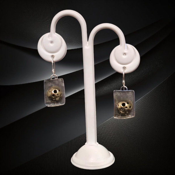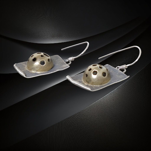 Ręcznie wykonane kolczyki ze srebra próby 925 z dodatkiem mosiądzu to niezwykłe połączenie precyzji, rzemiosła i indywidualnego stylu. Ich unikalna forma i subtelne zdobienia sprawiają, że każdy egzemplarz stanowi niepowtarzalne dzieło sztuki użytkowej – jedyny w swoim rodzaju, stworzony w krótkiej serii. Dodatek mosiądzu nadaje biżuterii ciepłego, złocistego odcienia, tworząc wyjątkowy efekt kolorystyczny.