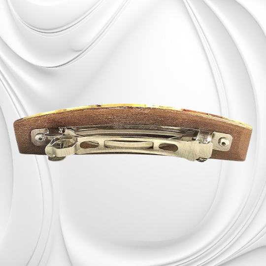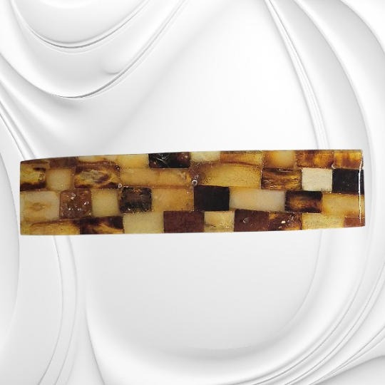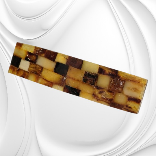 Spinka do włosów wyklejana z płytek bursztynu bałtyckiego przyciąga uwagę ciepłymi odcieniami miodu i koniaku, tworząc elegancką ozdobę podkreślającą kobiecy styl. Starannie dobrane i oszlifowane płytki bursztynu tworzą harmonijną mozaikę, która pięknie odbija światło. Dzięki temu spinka do włosów z bursztynu bałtyckiego staje się nie tylko praktycznym dodatkiem, ale również wyrazistą biżuterią do włosów. Naturalna kolorystyka doskonale komponuje się z jasnymi i ciemnymi włosami, dodając im ciepłego blasku.