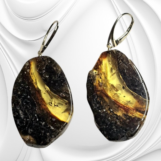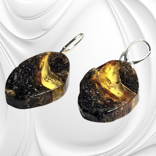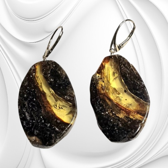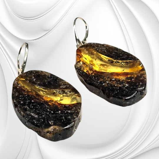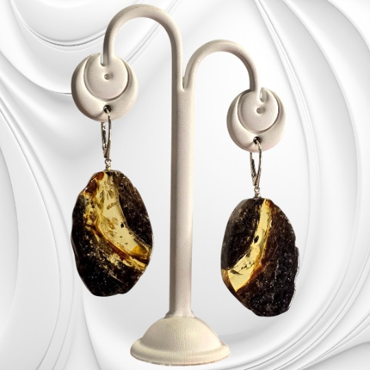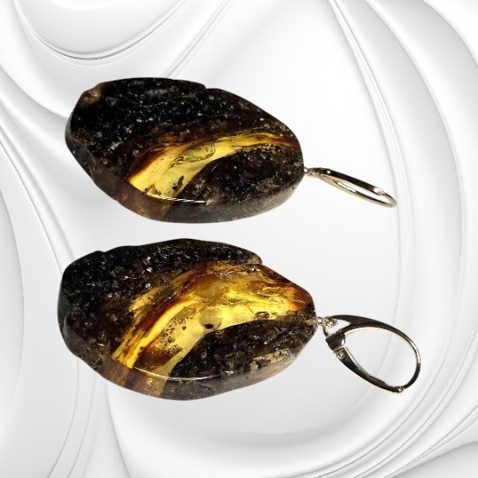 Wyjątkowe kolczyki z naturalnego bursztynu ze srebrnym zapięciem typu angielskiego