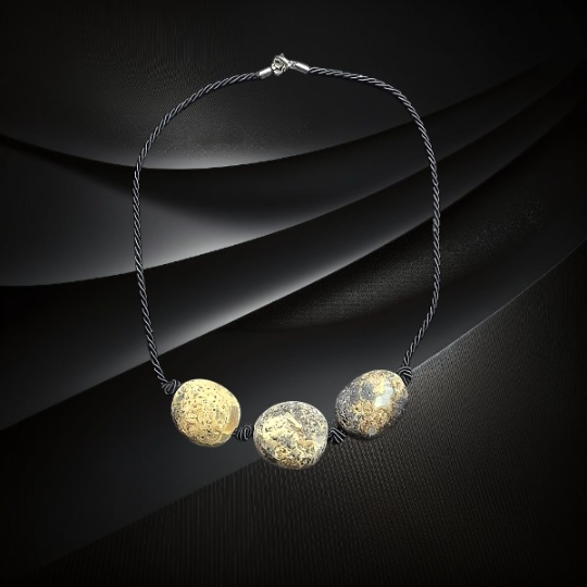 Bałtycki bursztyn powstawał miliony lat temu z żywicy pradawnych drzew. W surowej formie zachował ślady czasu, natury i światła. Trzy fasolki symbolicznie mogą oznaczać przeszłość, teraźniejszość i przyszłość – połączone w jedną harmonijną całość. Nosząc wyjątkowy naszyjnik z trzech brył surowego bursztynu, masz przy sobie fragment historii zamknięty w minimalistycznej formie.