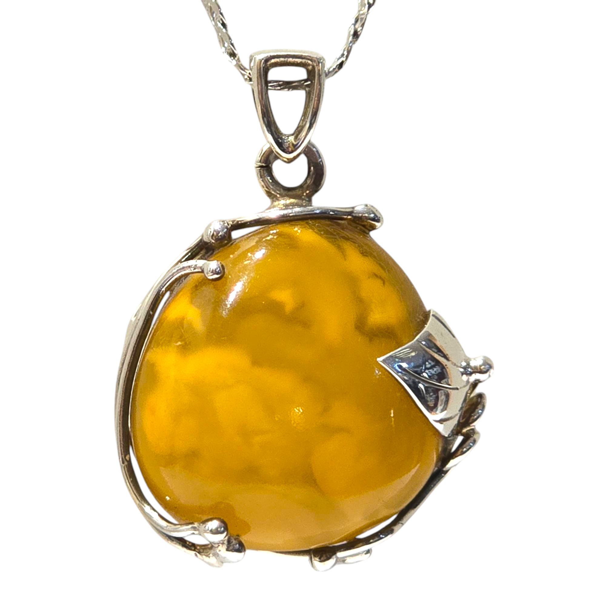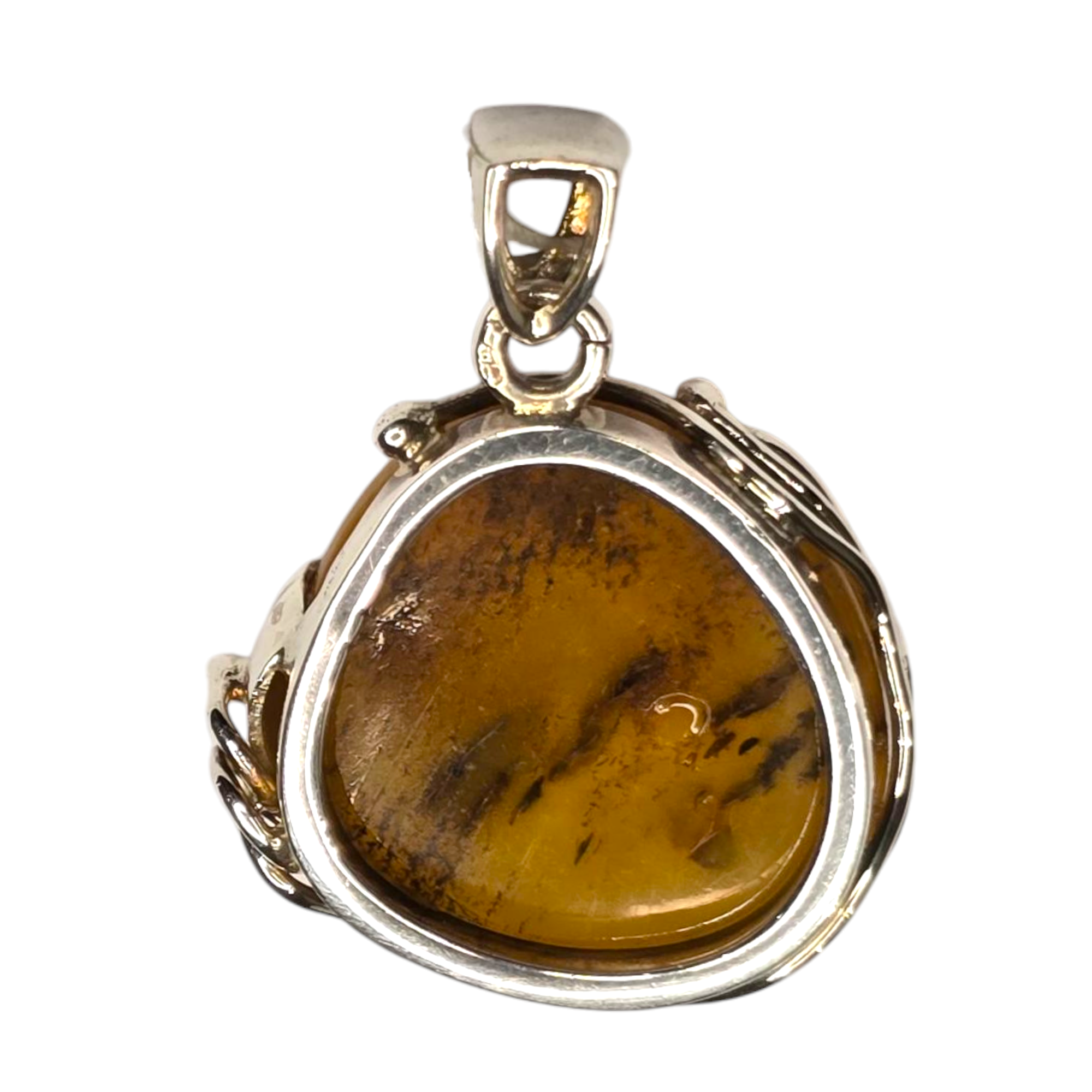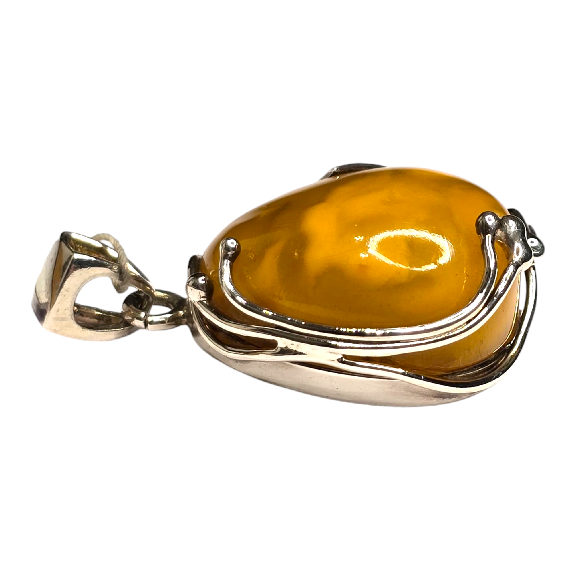 Ręcznie wykonana zawieszka z bursztynu i srebra.